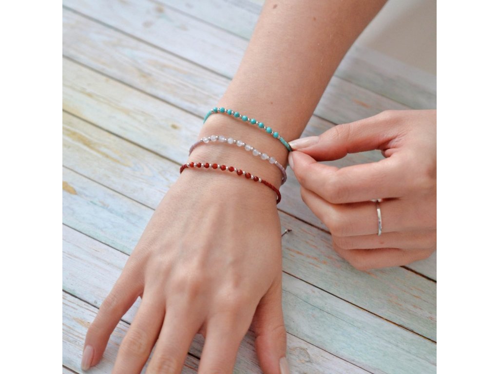 Je dozdobený korálkami zo striebra 925/1000. Dĺžka náramku sa reguluje posúvaním šnúrky v uzle a je maximálne 25 cm.