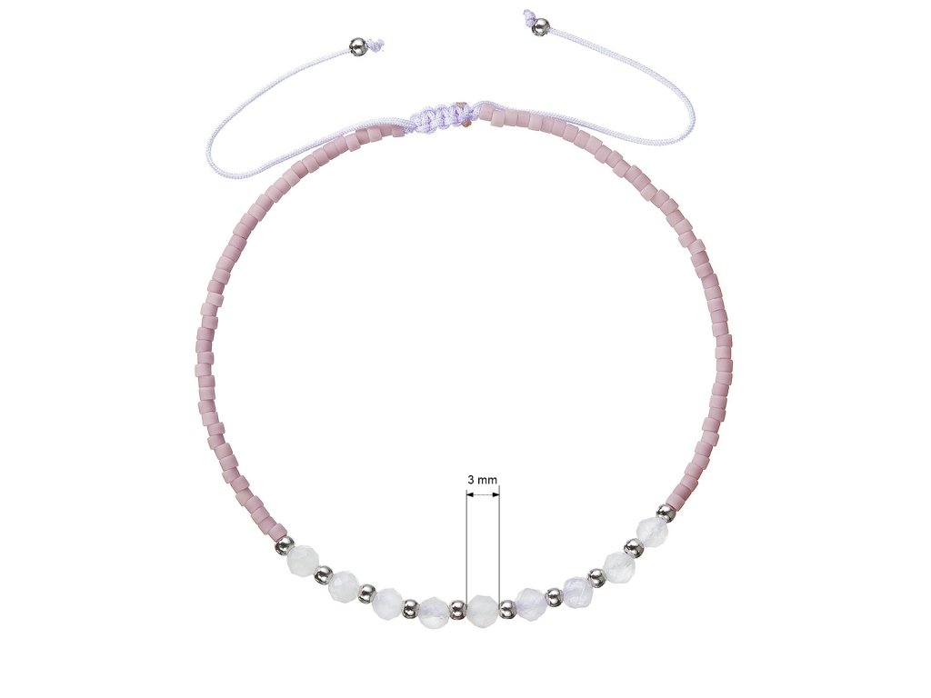 Ručne vyrobený so starostlivosťou a precíznosťou. Náramok Miyuki 13037.3 sa skladá z jemne fialových a bielych korálok. Je dozdobený komponentom guličiek zo striebra 925/1000.