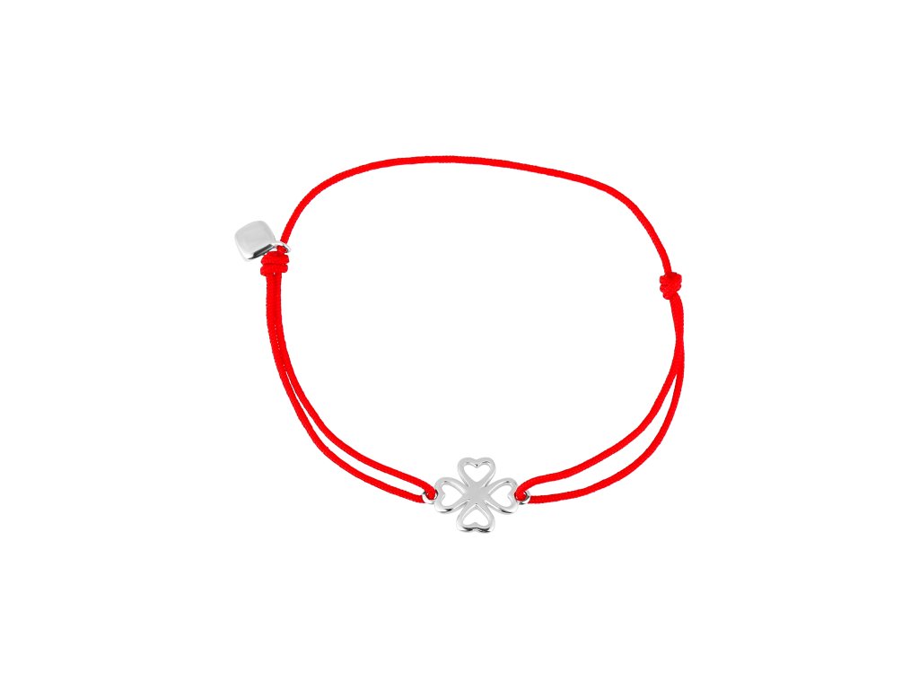 Textilný náramok červený so strieborným štvorlístkom 13054.3 red