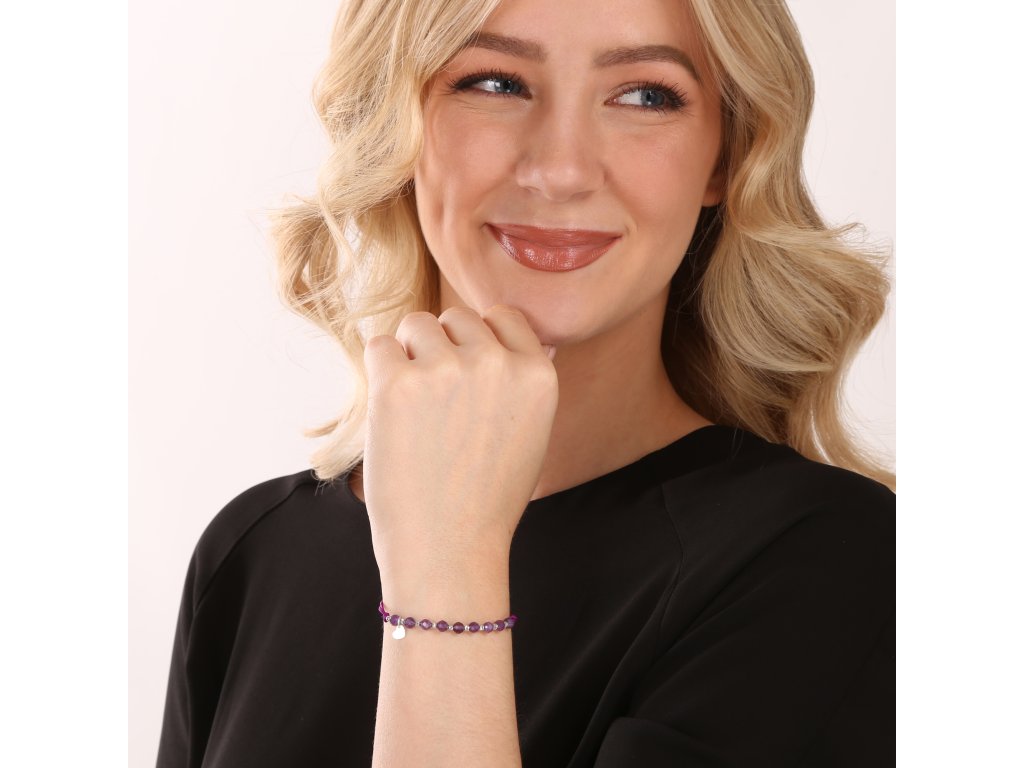 Textilný náramok fialový s korálkami z ametystu 13059.3