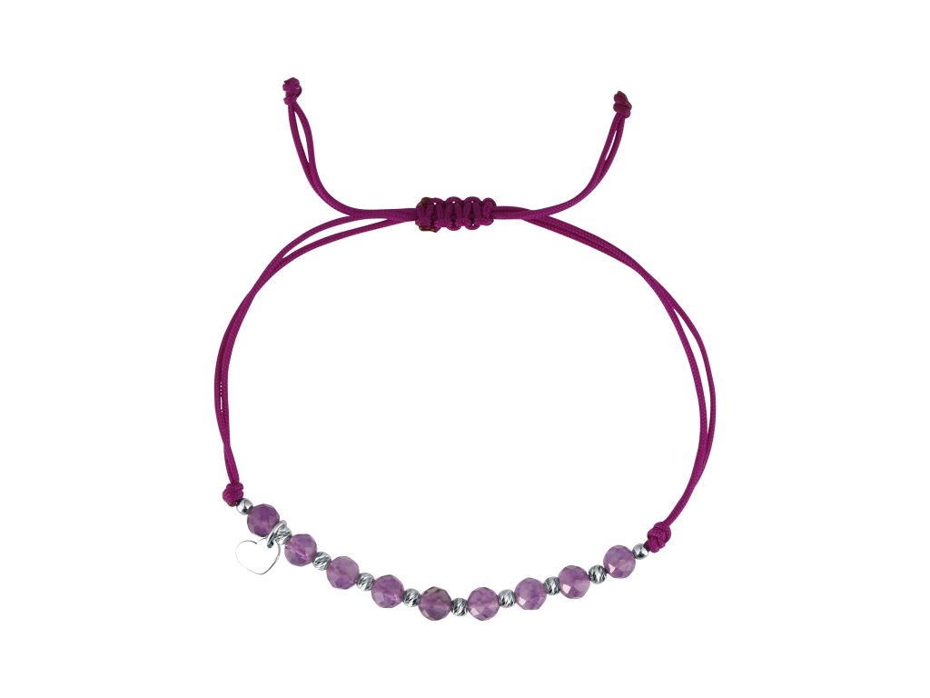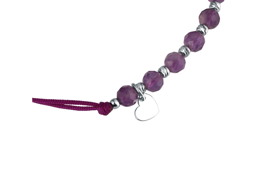 Je vyrobený z hladkej pevnej šnúrky a korálok z ametystu, ktoré sa striedajú so striebornými guličkami, navyše je prizdobený príveskom tvaru srdiečka.