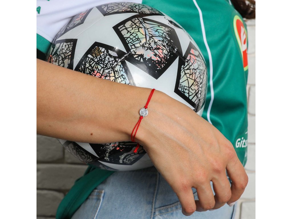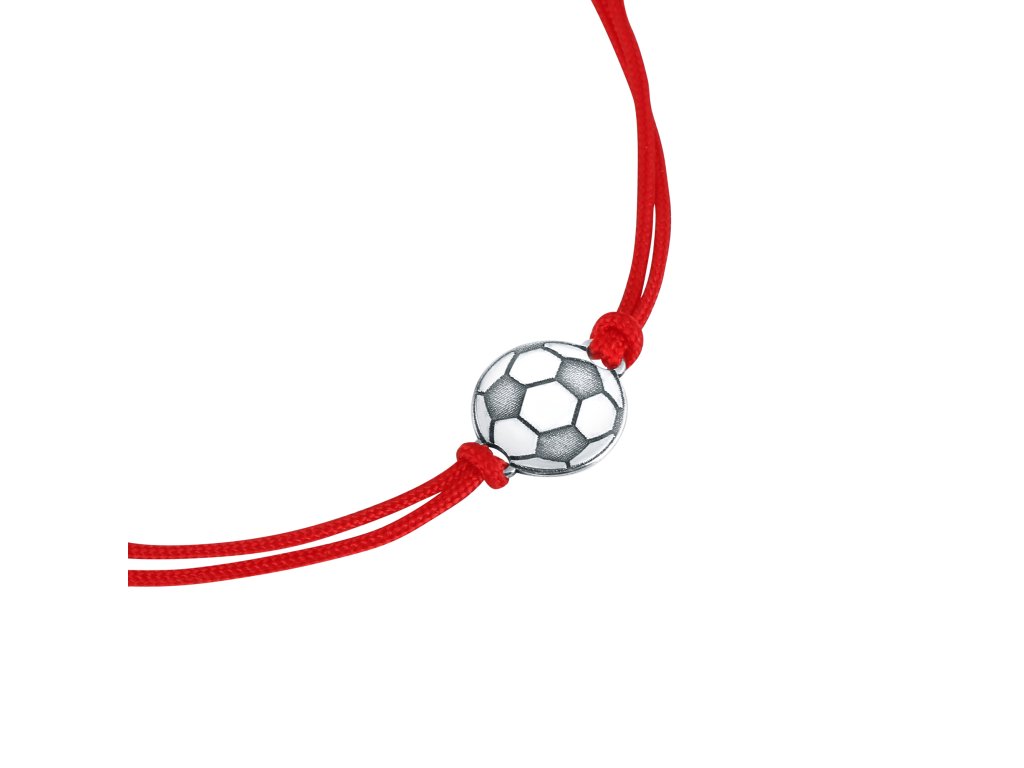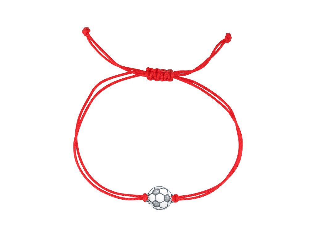 Textilný náramok Kabbalah červený so striebornou futbalovou loptou 13057.3 red