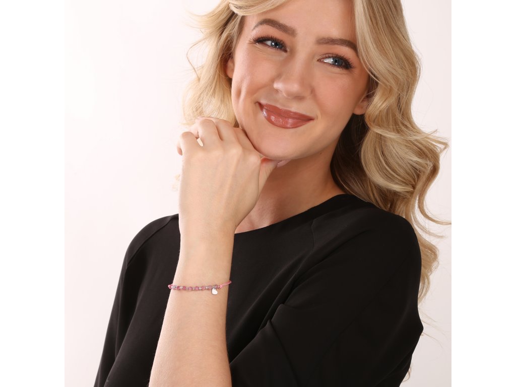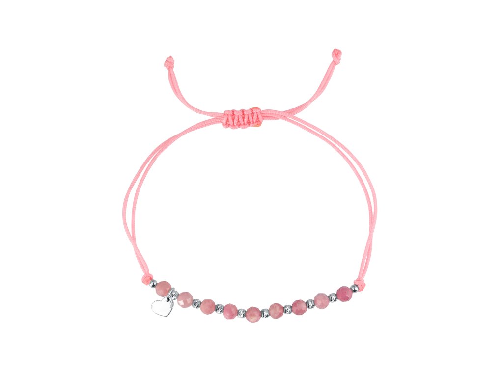 Textilný náramok ružový s korálkami z turmalínu 13059.3