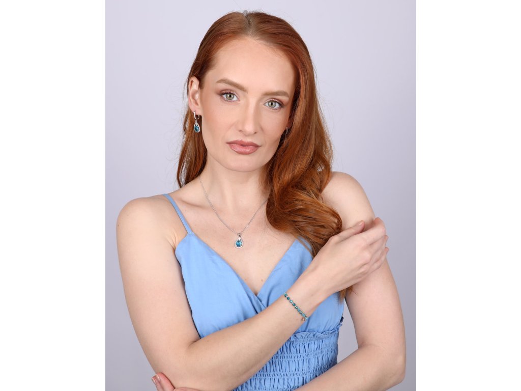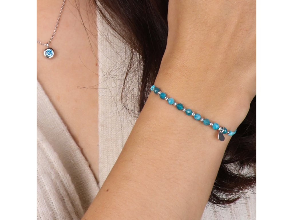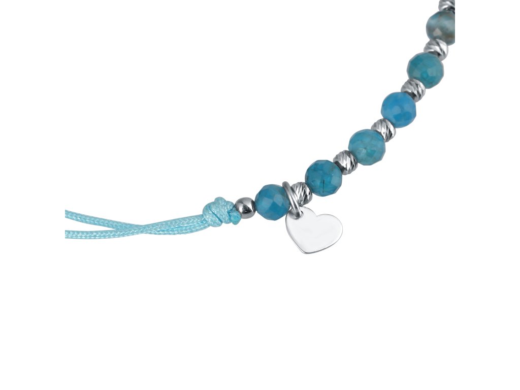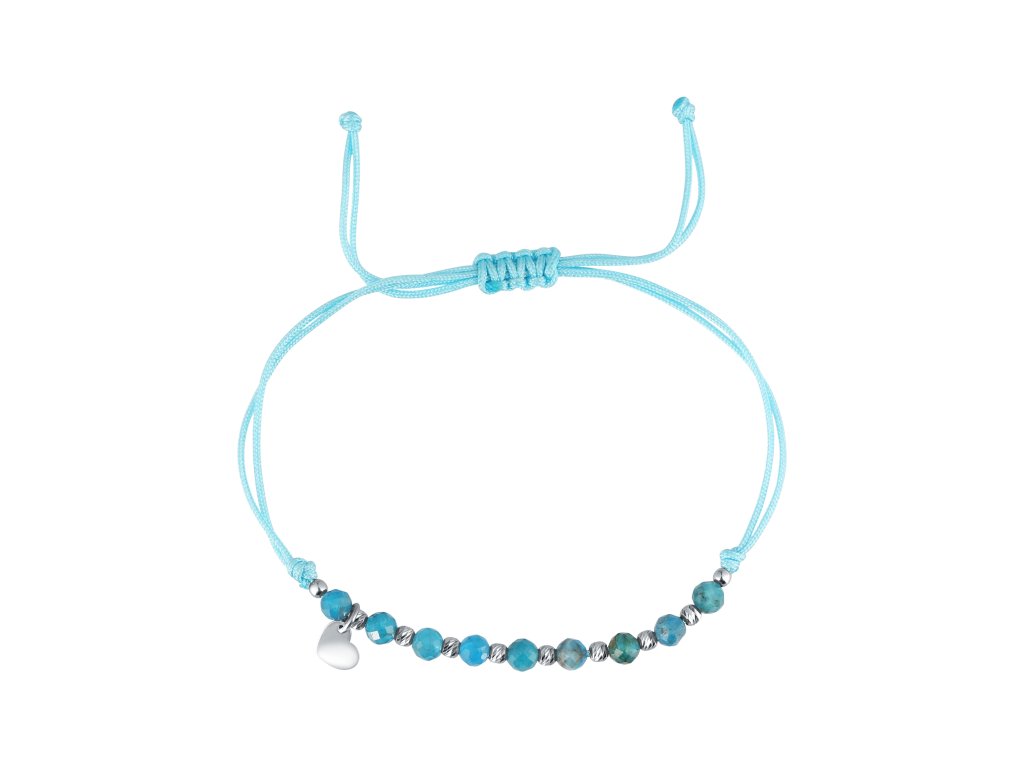 Je vyrobený z hladkej pevnej šnúrky a korálok z apatitu, ktoré sa striedajú so striebornými guličkami, navyše je prizdobený príveskom tvaru srdiečka.