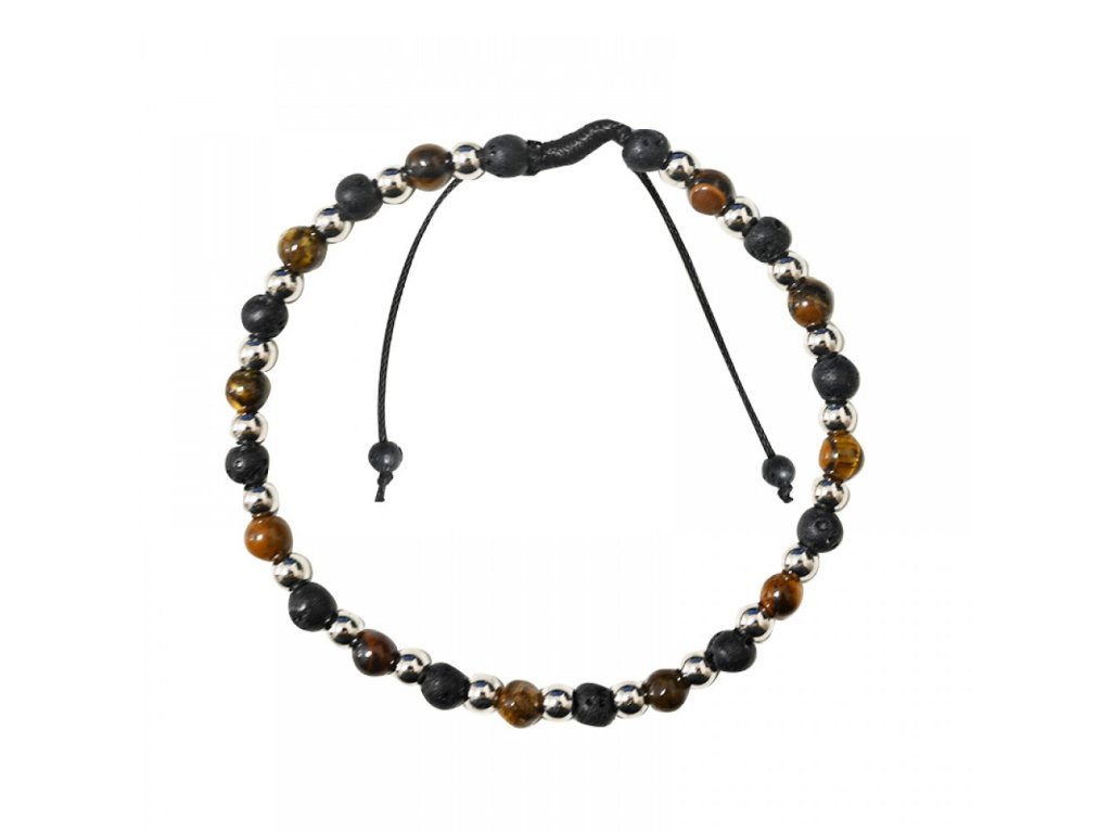 Textilný pánsky náramok s oceľovými a prírodnými guličkami Amorino DS2428B540