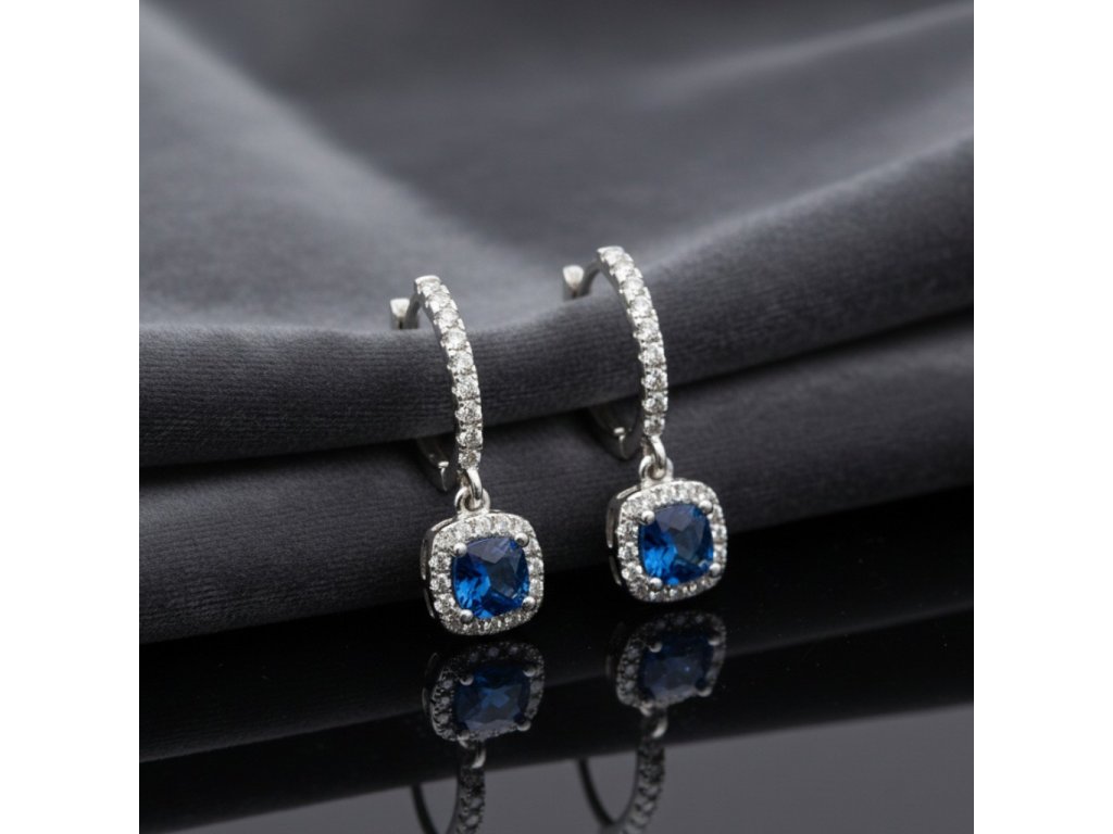 Trblietavé visiace náušnice zo striebra s modrým a čírymi zirkónmi EZB119012