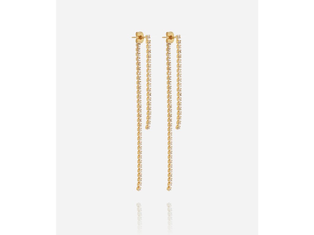 Náušnice z ocele pozlátené jemným zlatom, osadené 2 radmi zirkónov.
