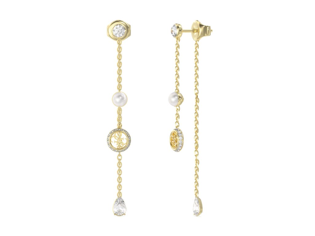 Visiace oceľové náušnice so zirkónmi a perlou Guess Tiny Pearly JUBE05513JWYGT
