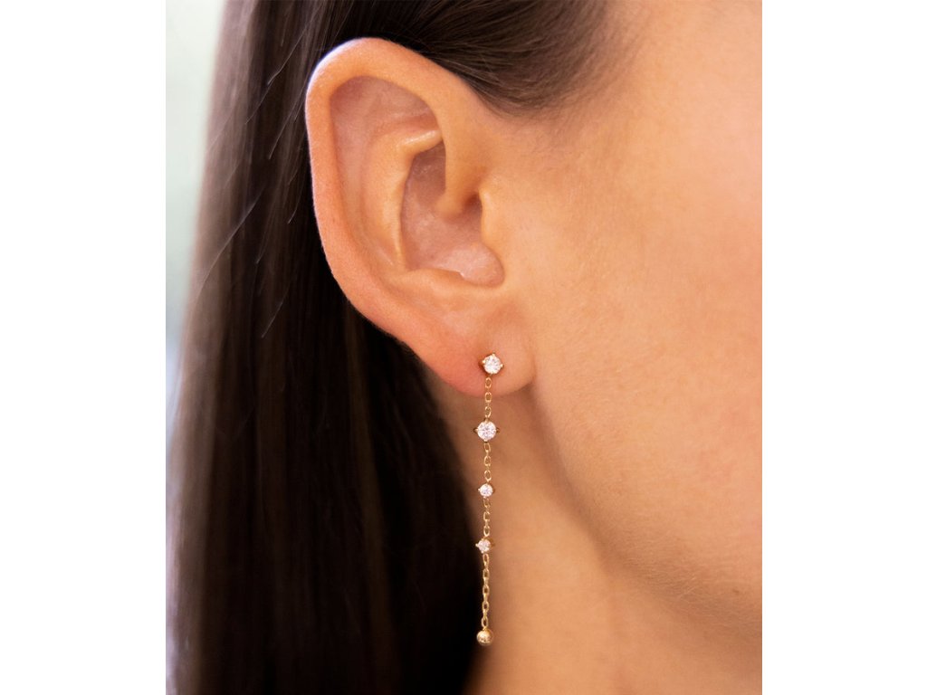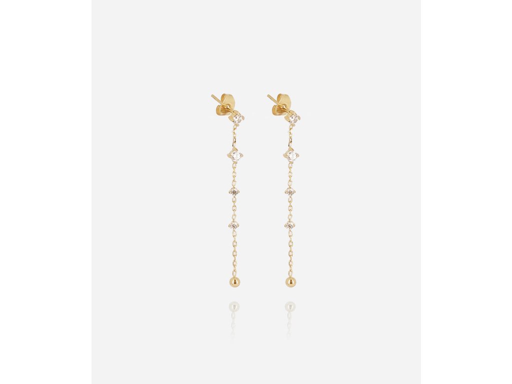 Náušnice z ocele pozlátené rýdzym zlatom pozostávajúce z retiazky osadenej niekoľkými malými zirkónmi.