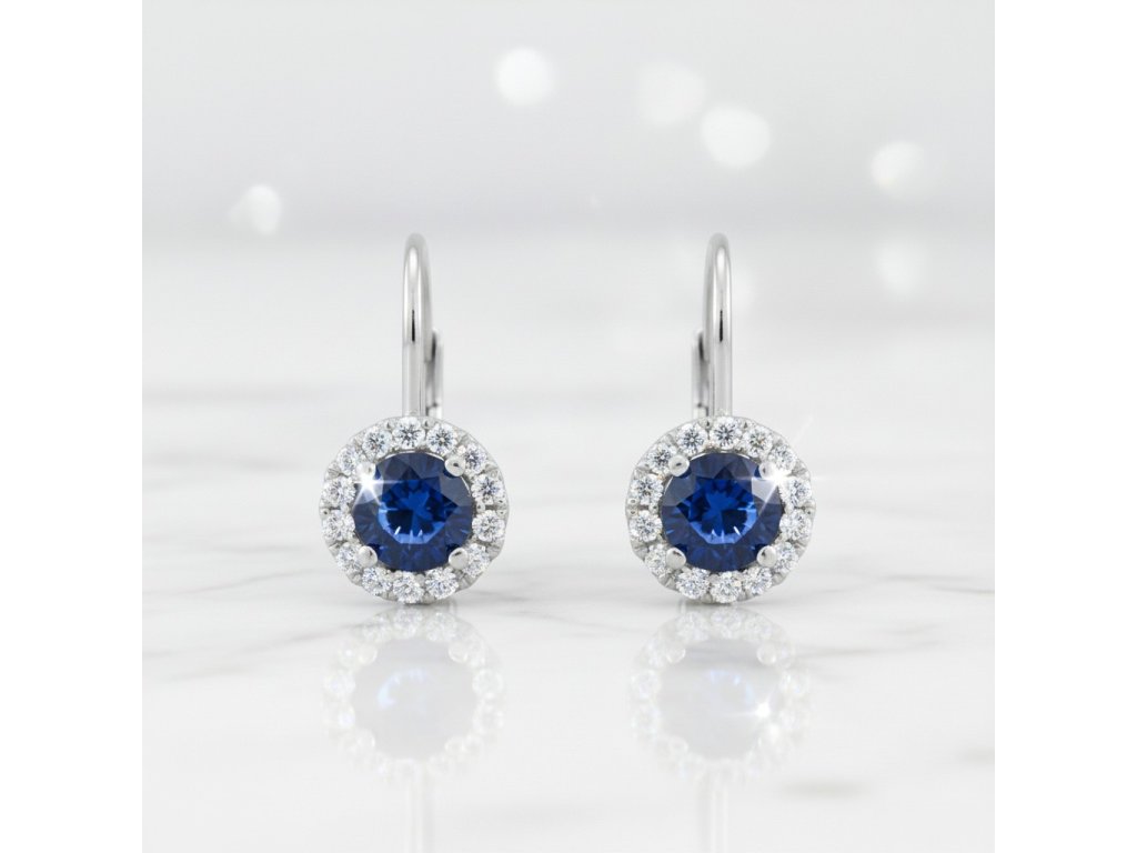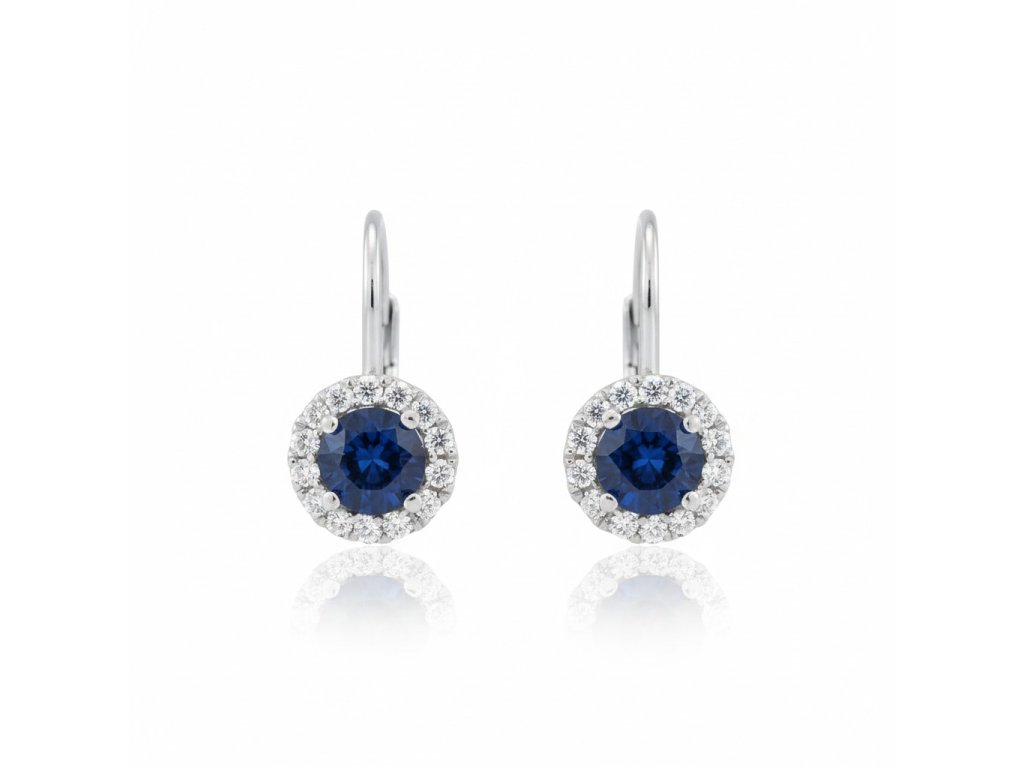 Visiace strieborné náušnice na klapku s modrým zirkónom EZB100740