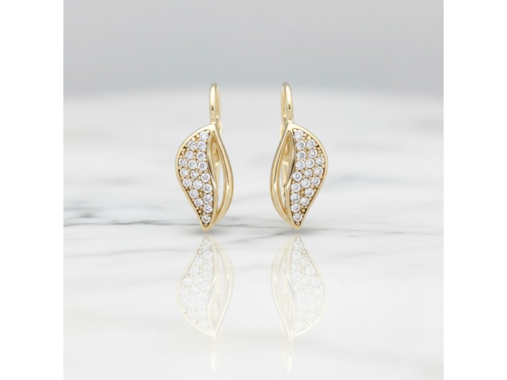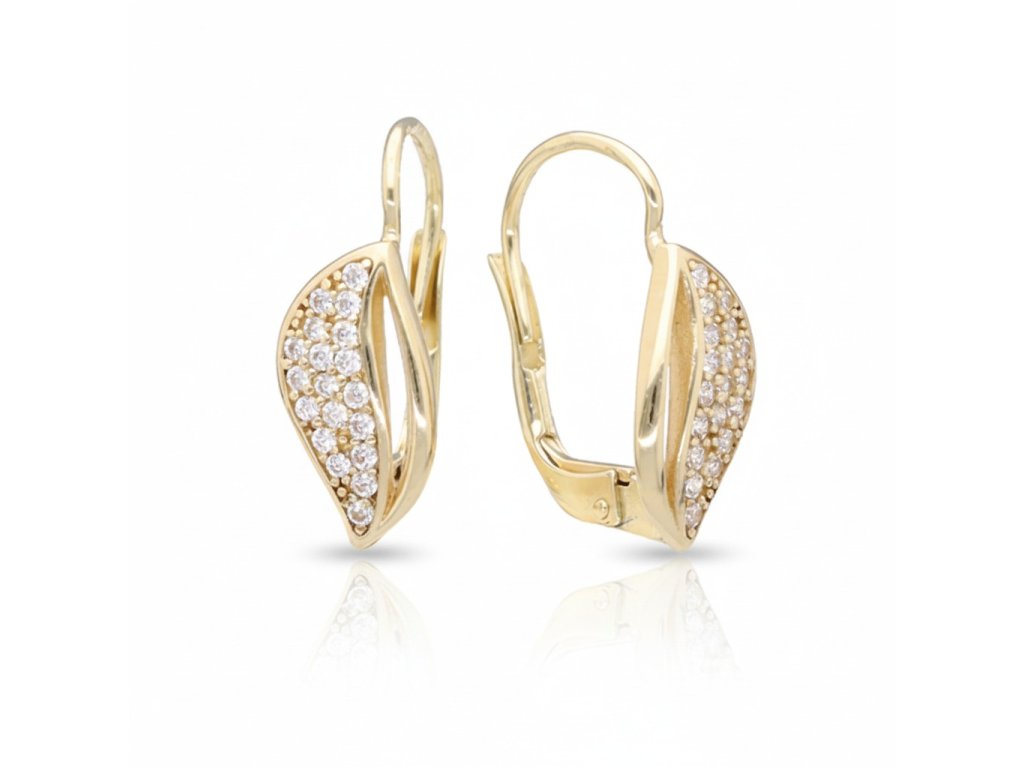 Visiace zlaté náušnice so zirkónmi, vlnky, 1,80g