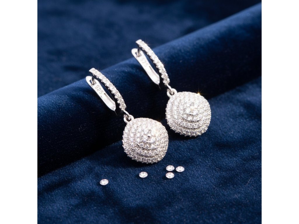 Žiarivé strieborné visiace náušnice so zirkónmi EZB124669
