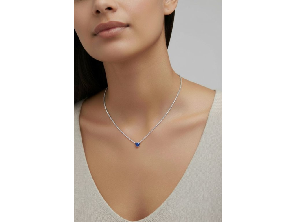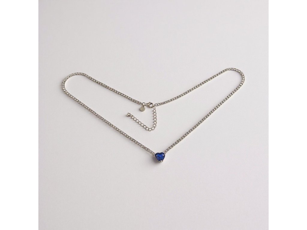 Zirkónový strieborný náhrdelník s modrým srdiečkovým zirkónom NZB113022