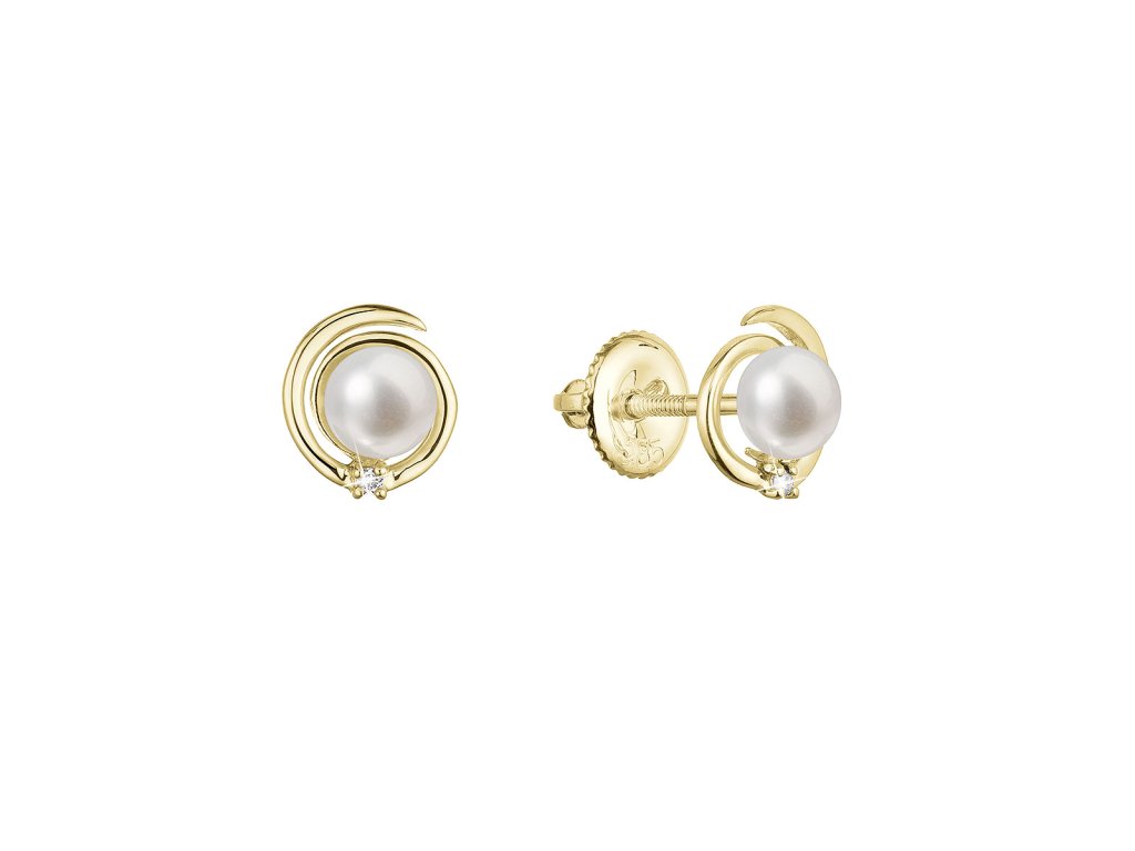 Zlaté 14 karátové náušnice s riečnou perlou a briliantmi 91PB00051