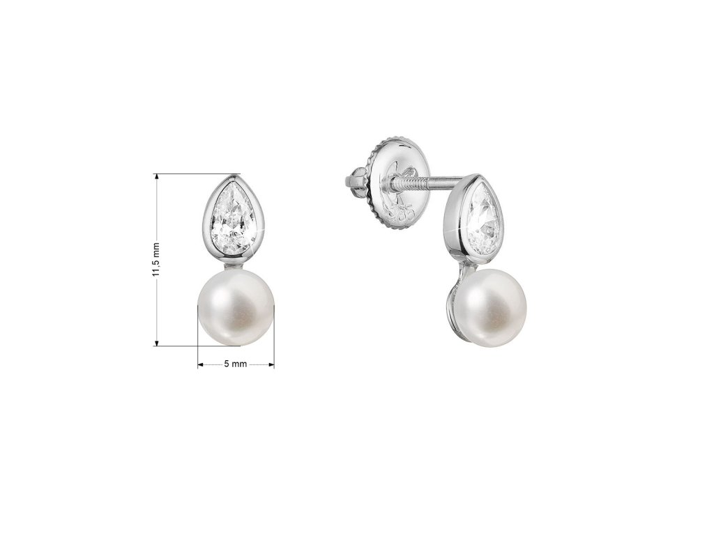 Zlaté 14 karátové náušnice z bieleho zlata s bielou riečnou perlou a zirkónmi 81PZ00053