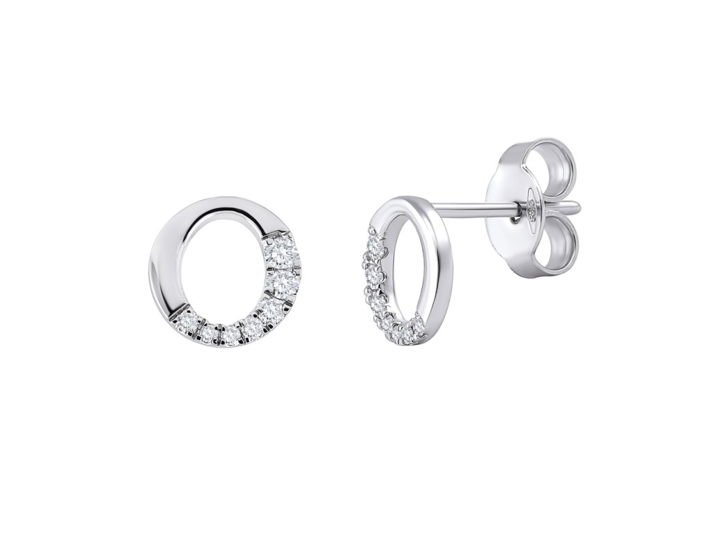 Elegantné dámske náušnice v tvare otvoreného kruhu sú vyrobené z kvalitného bieleho zlata a zdobené 14 diamantmi s briliantovým brúsom (SI2, H). Ich nadčasový dizajn spája jemný lesk zlata s očarujúcim žiarivým leskom diamantov, vďaka čomu sa stanú vaším obľúbeným doplnkom pre každodenné nosenie aj výnimočné príležitosti.