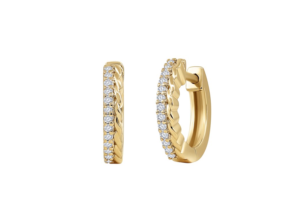 Zlaté kruhové náušnice s diamantmi a dekoratívnym vzorom