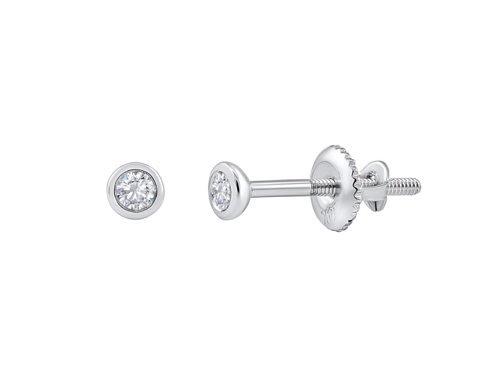 Tieto elegantné dámske náušnice z bieleho zlata 585/1000 sú navrhnuté v minimalistickom štýle s moderným hladkým (bezel) osadením diamantu. Dva kvalitné brilianty s parametrami SI2, H nádherne žiaria a dodávajú šperku luxusný nádych.