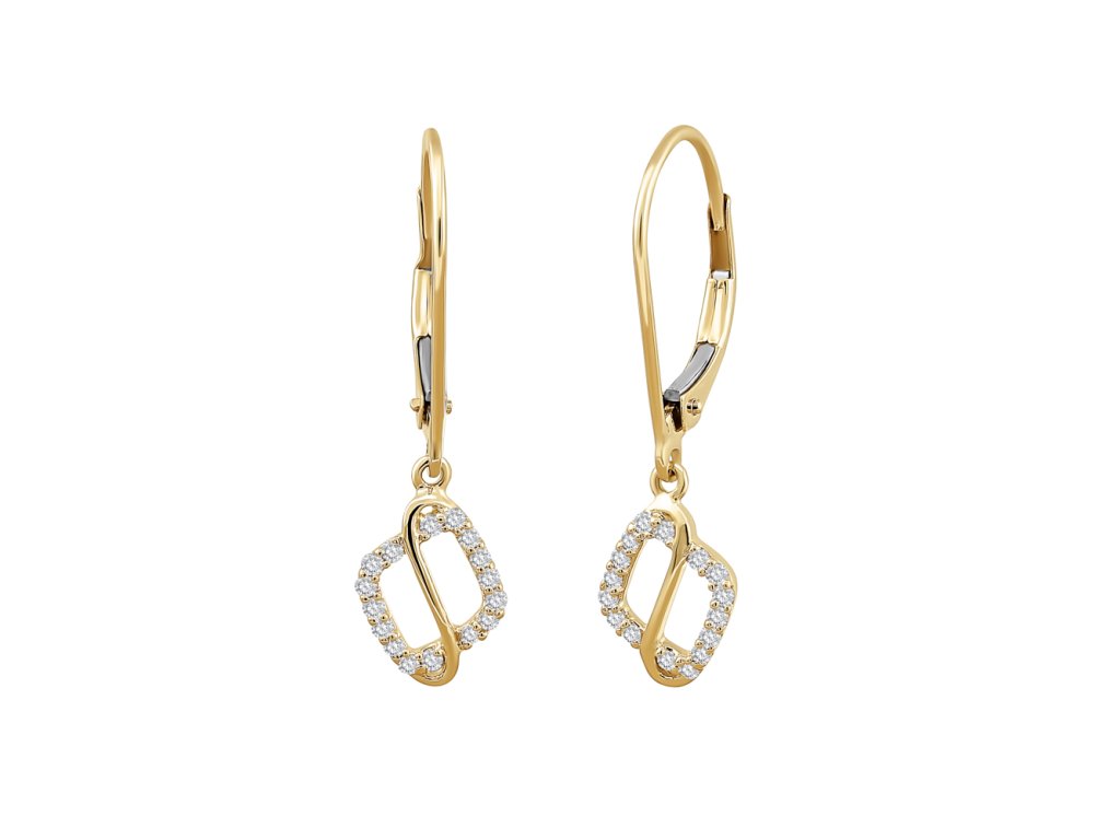Luxusné dámske náušnice z kvalitného žltého zlata 585/1000 majú elegantný visiaci dizajn s jemne prepletenými geometrickými tvarmi, ktoré sú zdobené 32 diamantmi s briliantovým brúsom (SI2, H). Ich precízne spracovanie a žiarivý lesk dodajú vášmu vzhľadu sofistikovanosť a jedinečný šarm.
