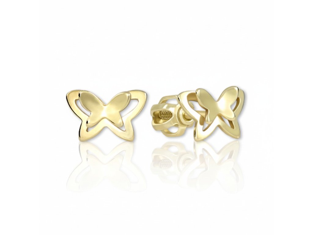 Zlaté minimalistické napichovacie náušnice, motýlik, zapínanie na balónik