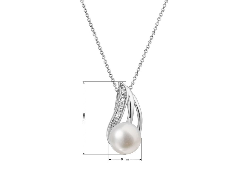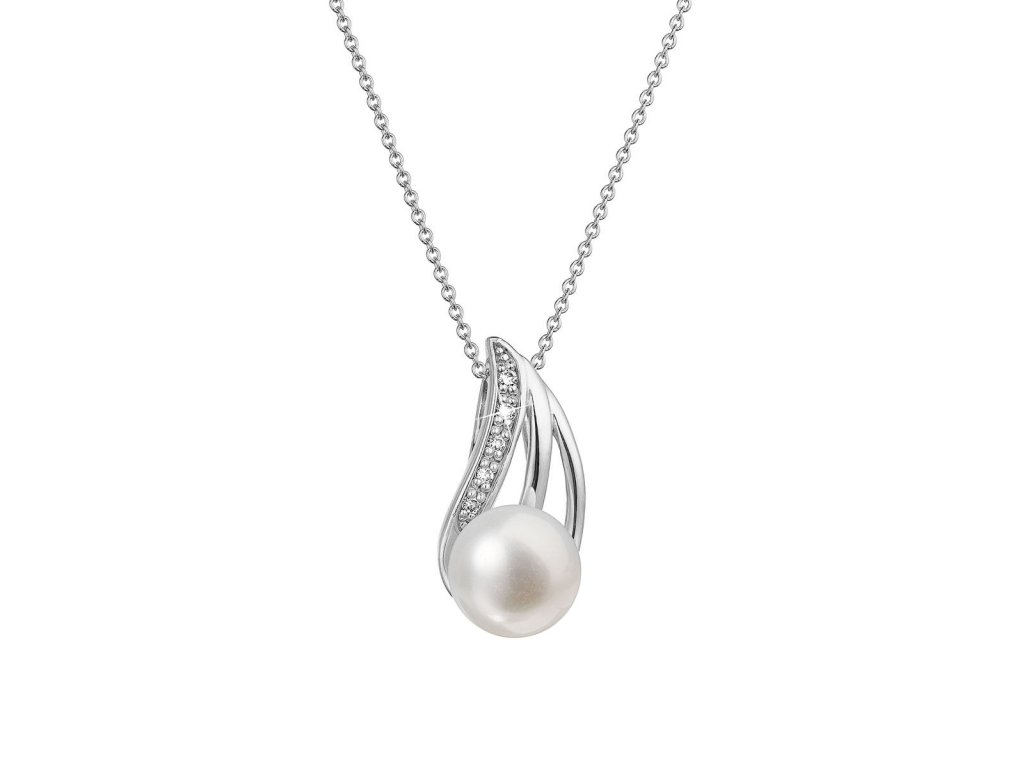 Zlatý 14 karátový náhrdelník biele zlato s bielou riečnou perlou a briliantmi 82PB00051
