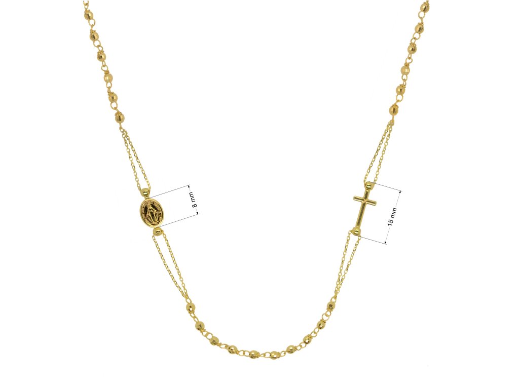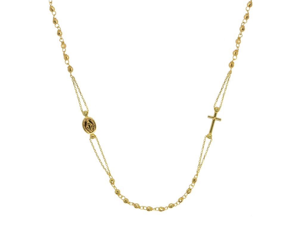 Zlatý 14 karátový náhrdelník ruženec s krížom a medailónikom s Pannou Máriou RŽ11 zlatý