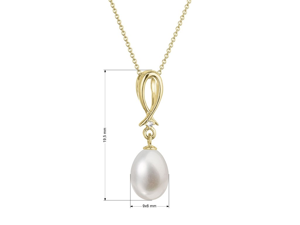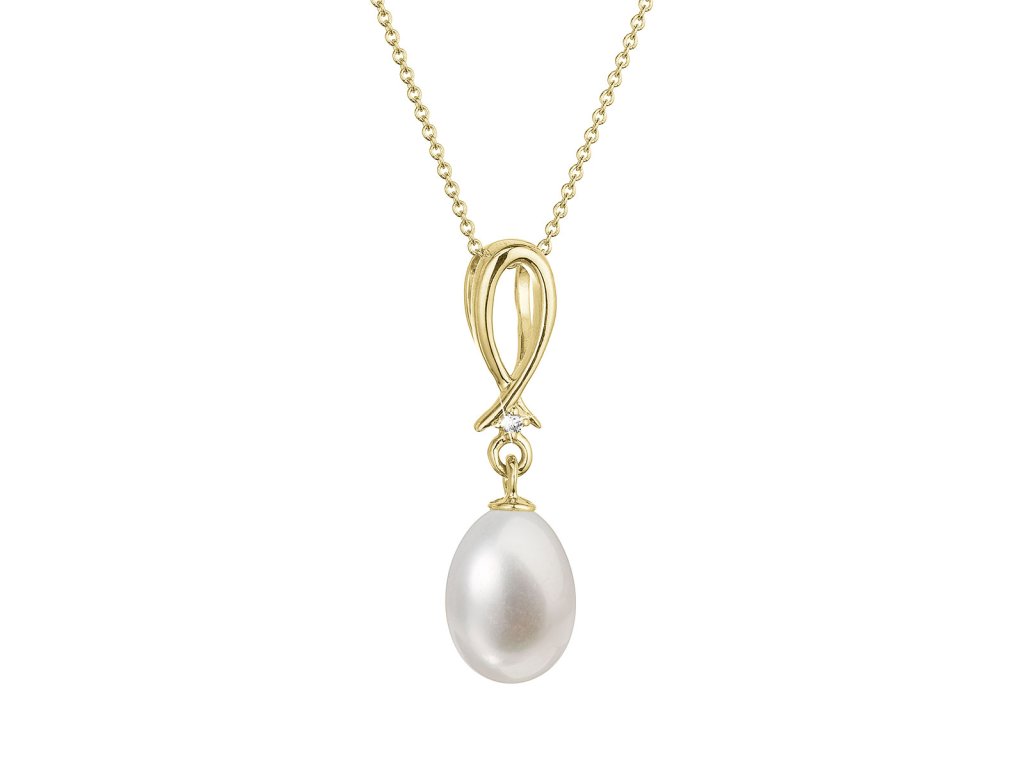 Zlatý 14 karátový náhrdelník s bielou riečnou perlou a briliantom 92PB00034