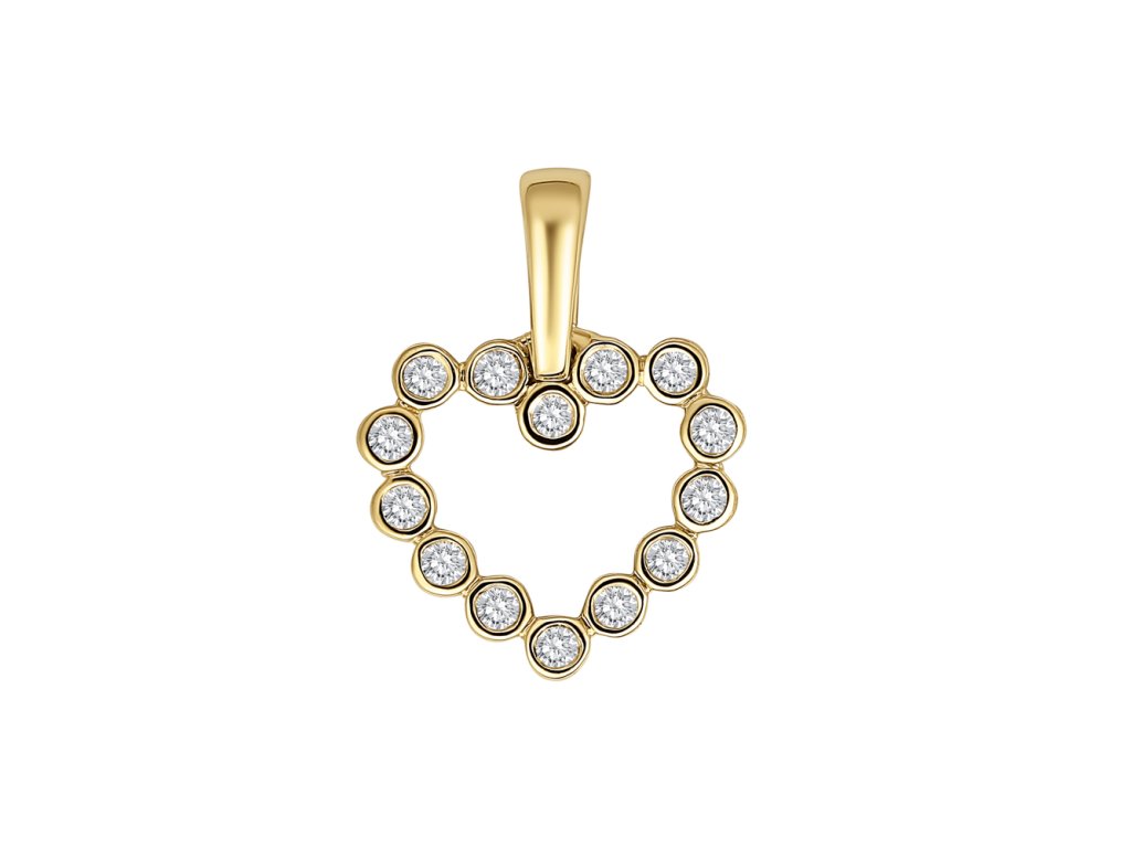 Romantický zlatý prívesok v tvare srdca je nežným symbolom lásky a elegancie, ktorý poteší ako darček alebo krásny doplnok na každý deň.
